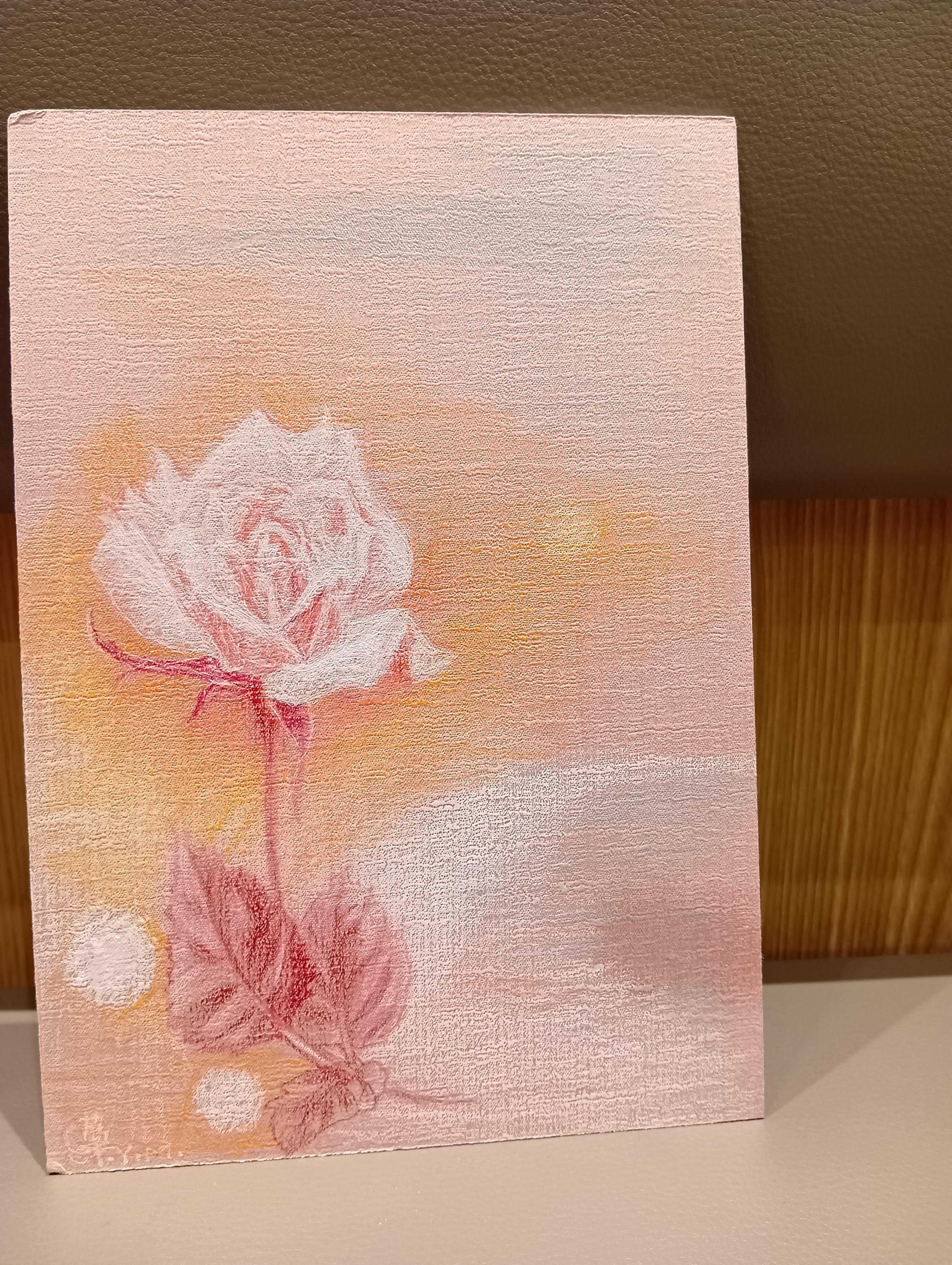 イラストボ―ド(サムホールサイズ22.7cm×15.8cm)に水彩色鉛筆とペンで丁寧に彩画しております。