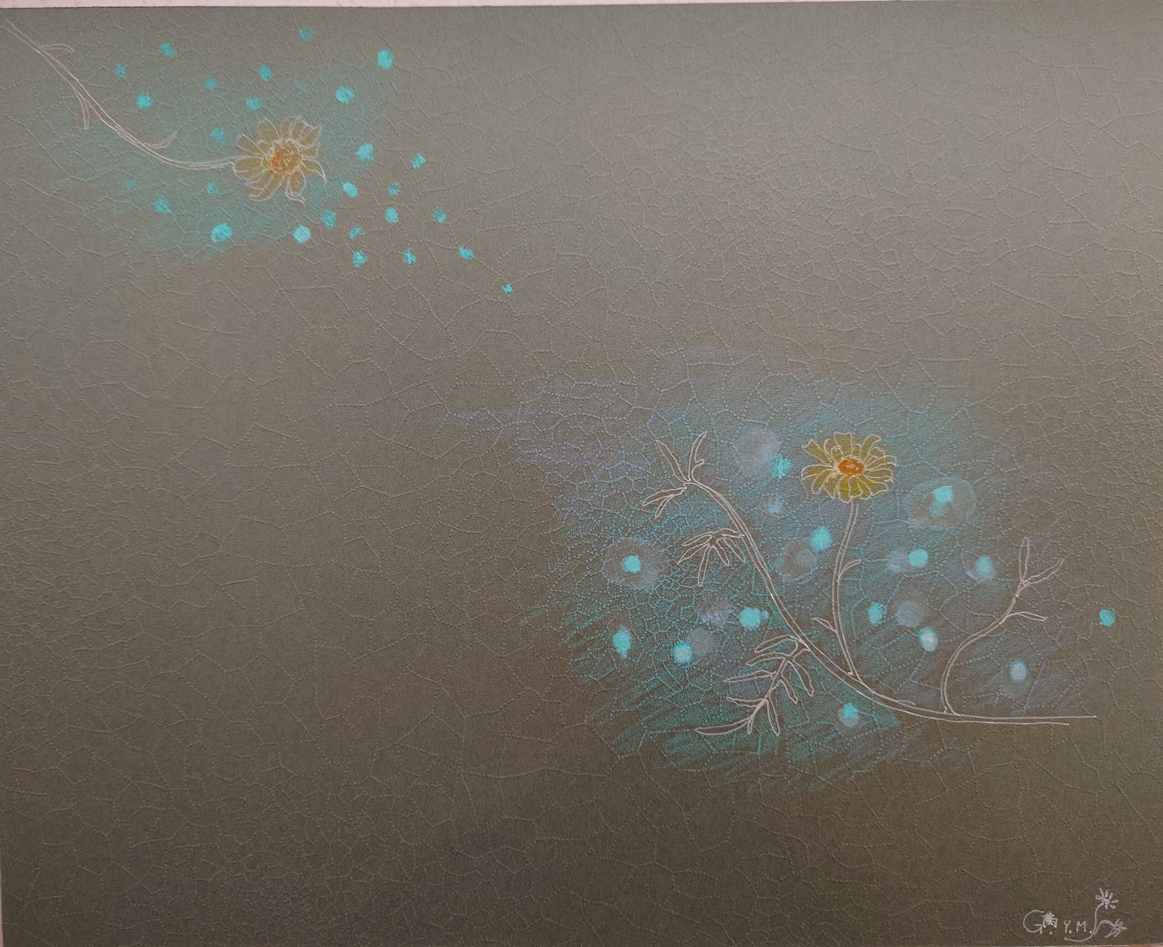 可愛いカモミールをペンで描いて水彩色鉛筆で着色しています