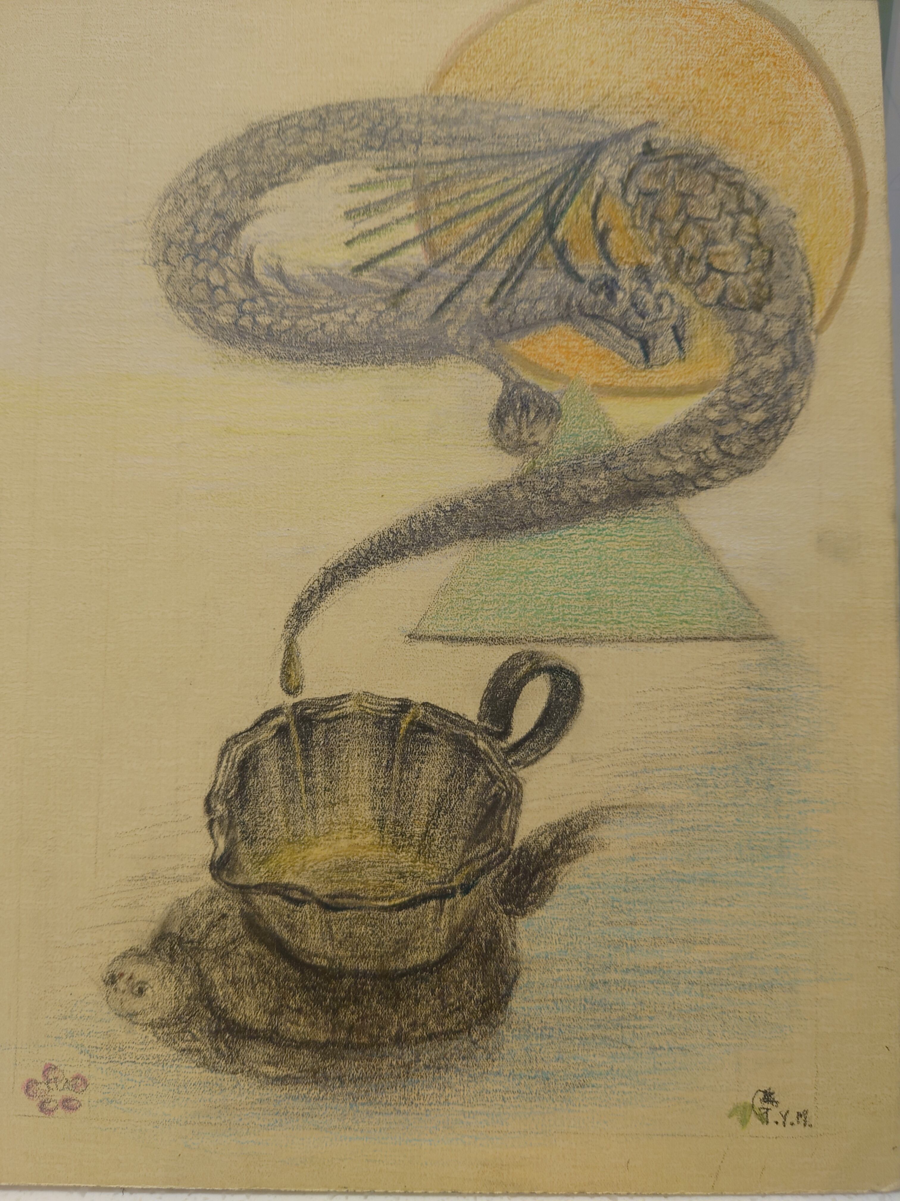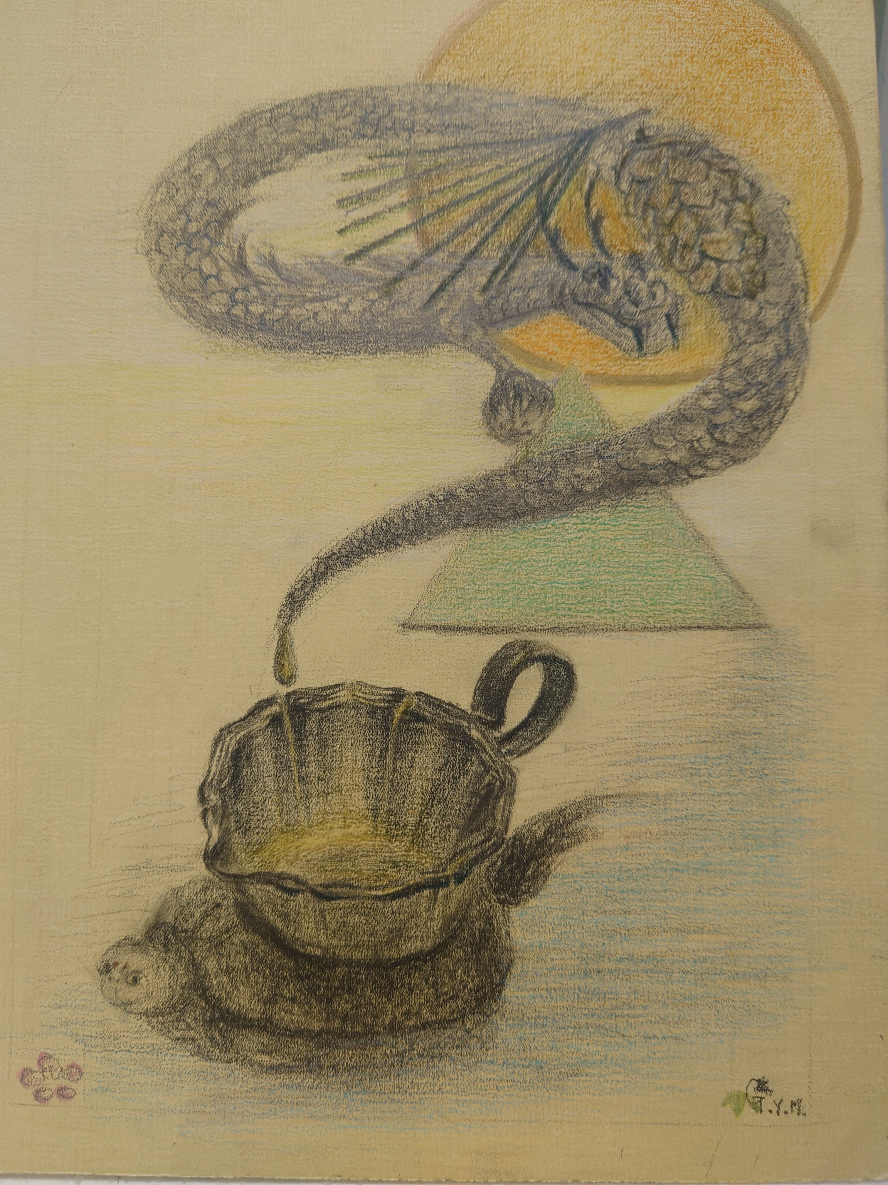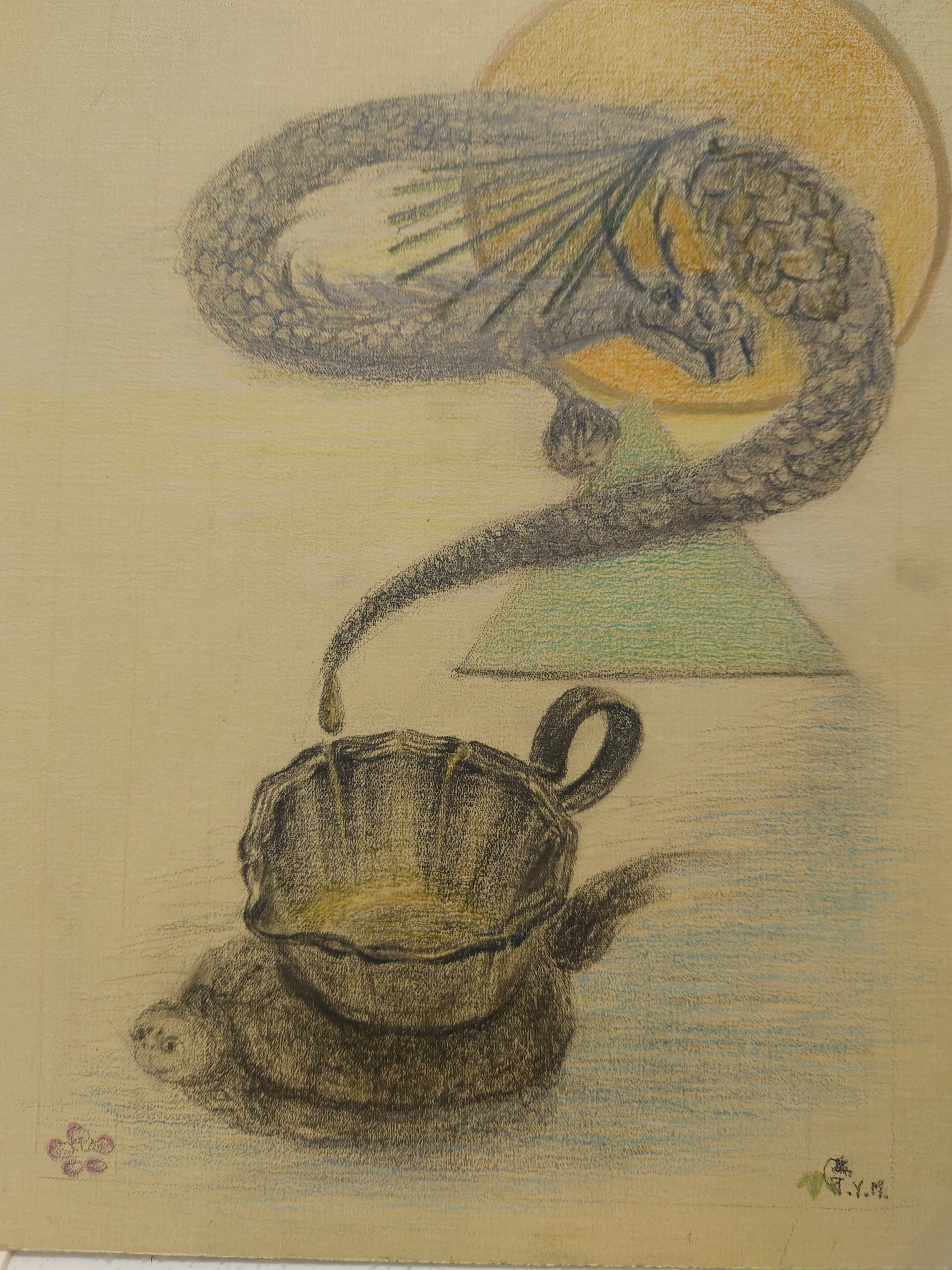イラストボードに鉛筆と水彩色鉛筆で彩色