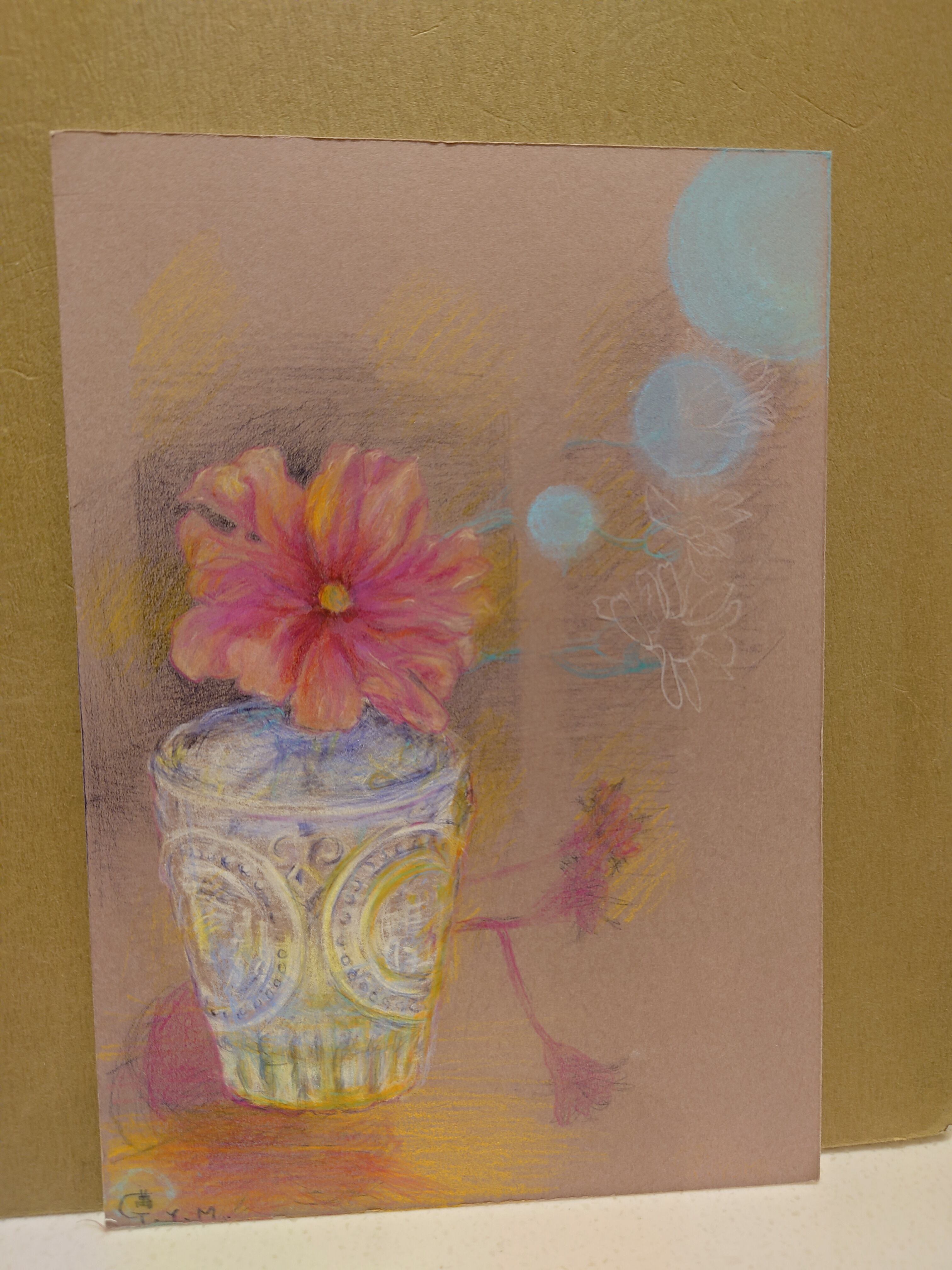 淡く優しい水彩色鉛筆画で可愛い渋いピンクのお花(アネモネ・セントブリッジ)を描きました。