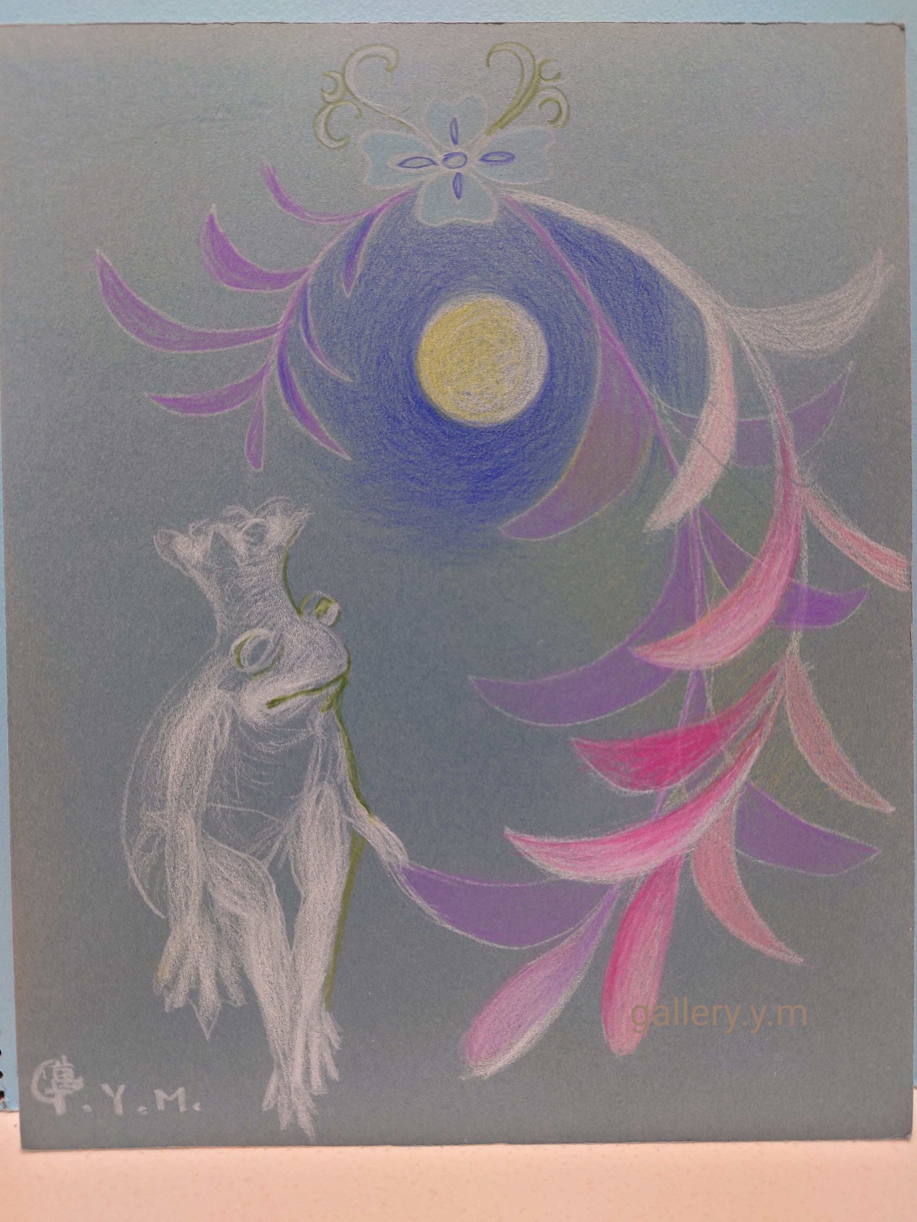 小さなサイズのイラストボード(カラー水彩紙を裏打ちしてある厚さ2mmのボード)に水彩色鉛筆で彩画してあります。