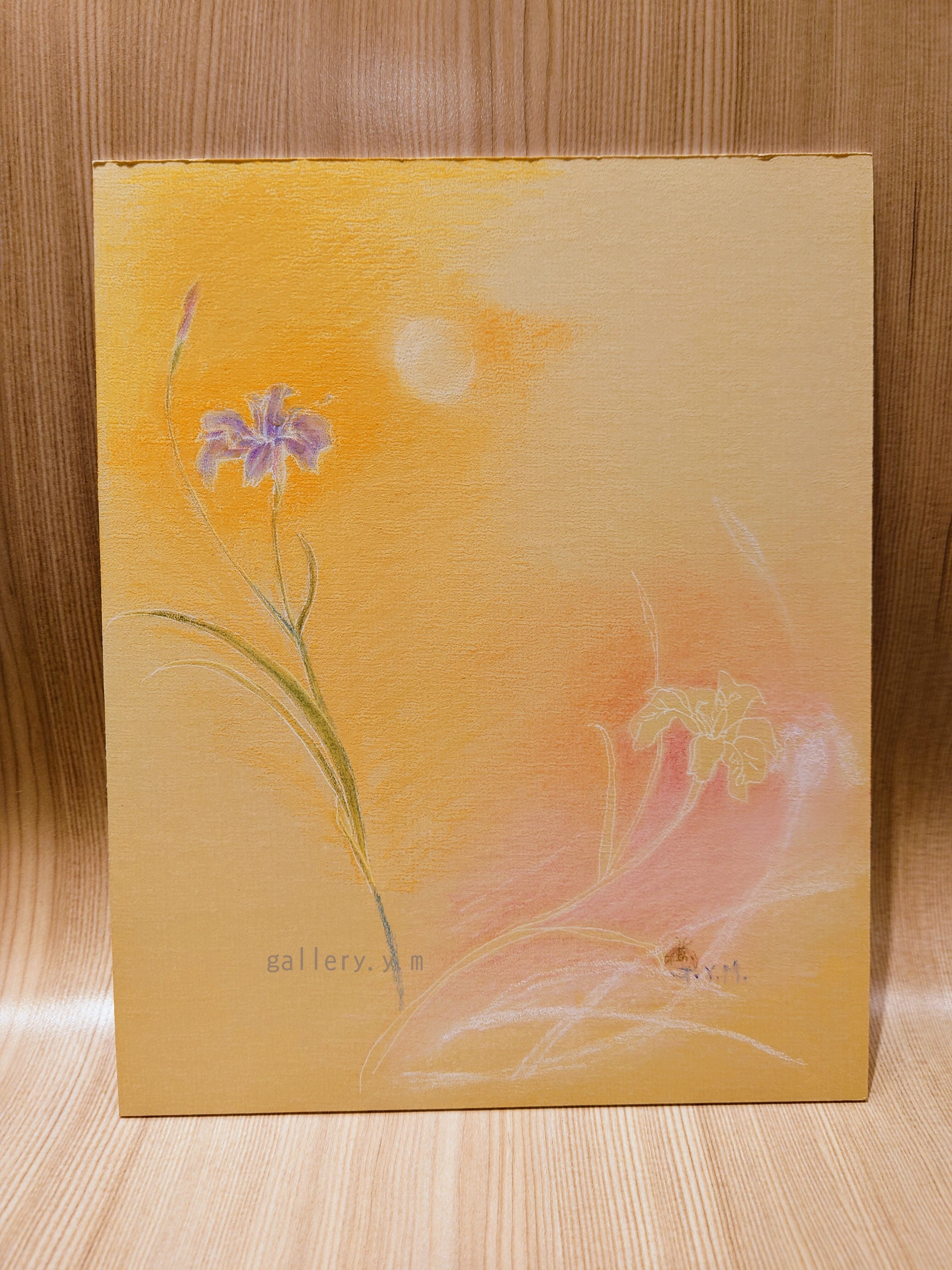 淡く優しい水彩色鉛筆画で可愛いいミニシャガを描きました。