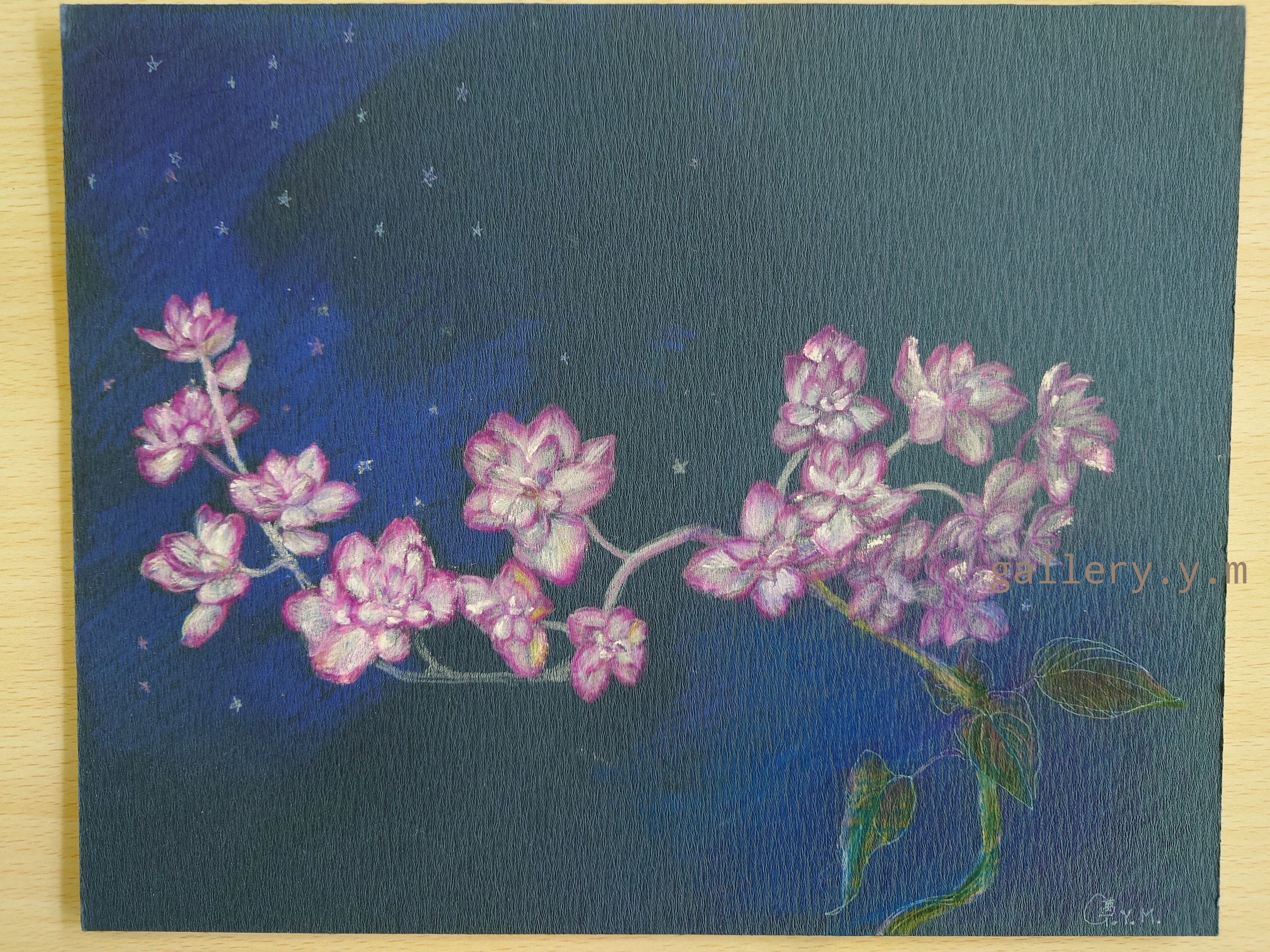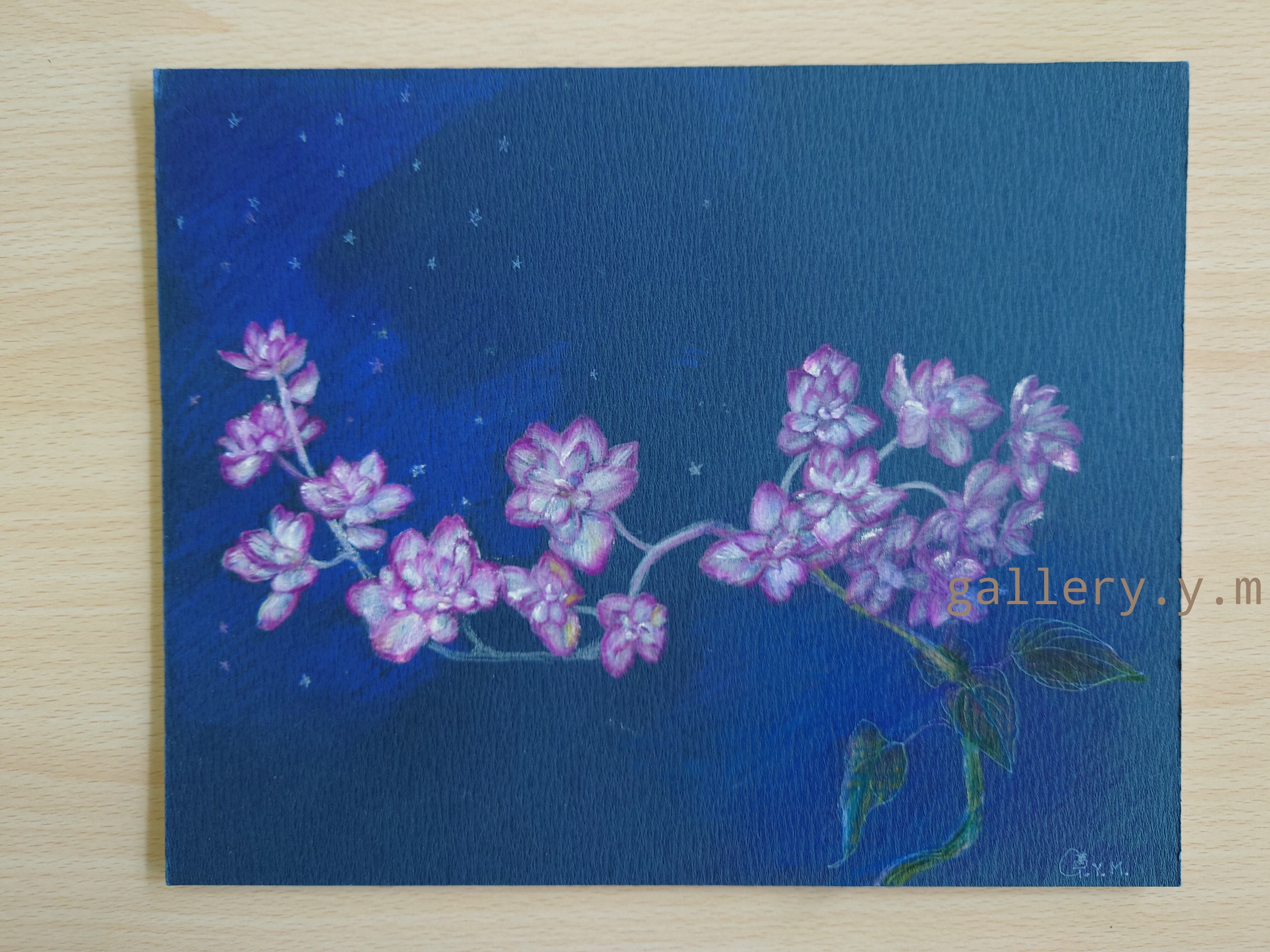 イラストボード(水彩紙を裏打ちしてある厚さ2mmのボード)に水彩色鉛筆で彩画しております。