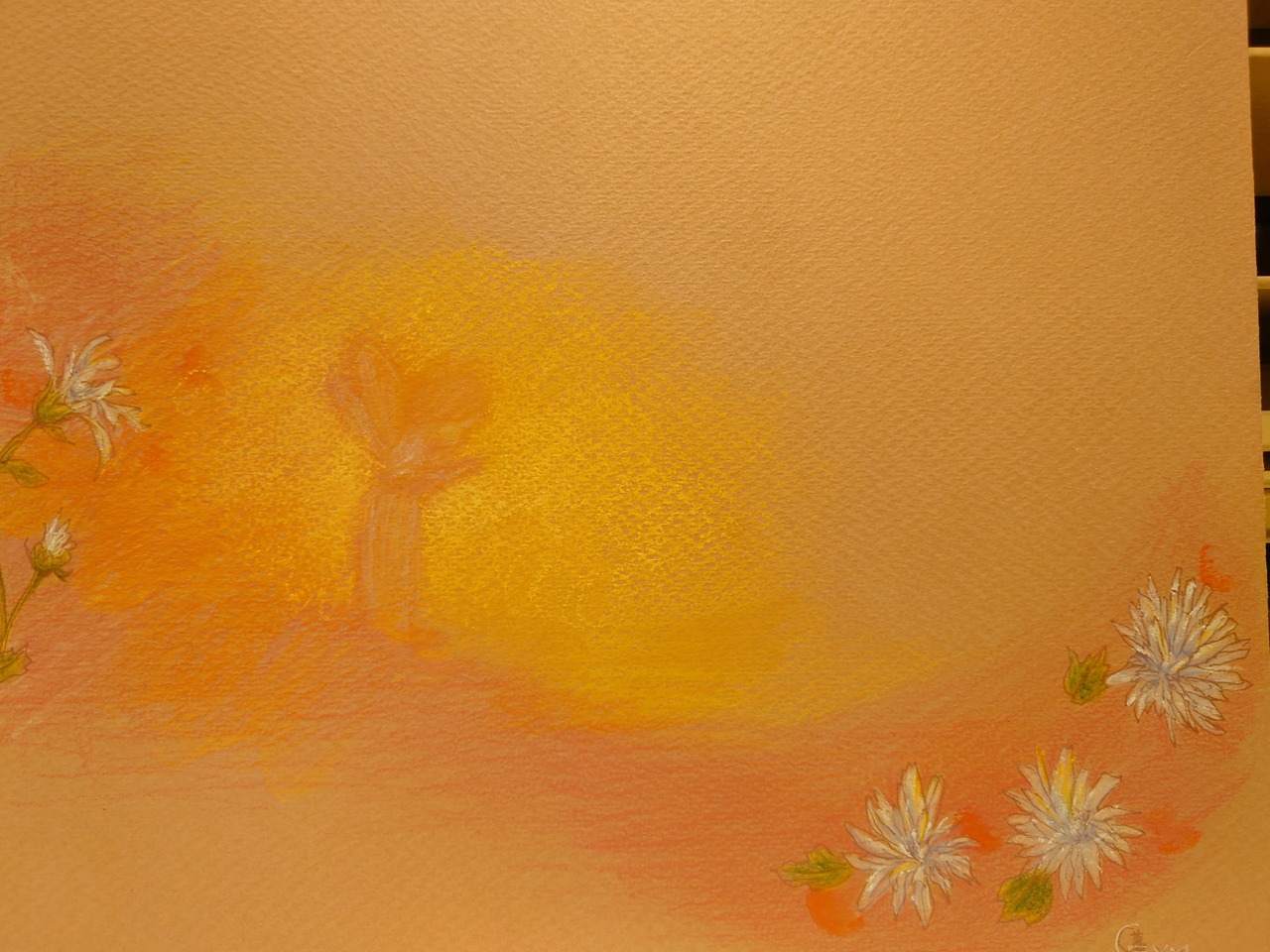 -||- 花言葉「深い愛情」を持つ白い小菊と慈愛に満ちた天使。やさしく包み込むような水彩色鉛筆画「白い小菊の祈り」。深い静寂と清らかな輝きが、心の奥深くまで届くような作品です。壁に掛けたり、机の上に飾ったりして、常に癒しと安らぎを感じられる空間を演出できます。天使の守りを感じながら、心地よいひとときをお過ごしください。